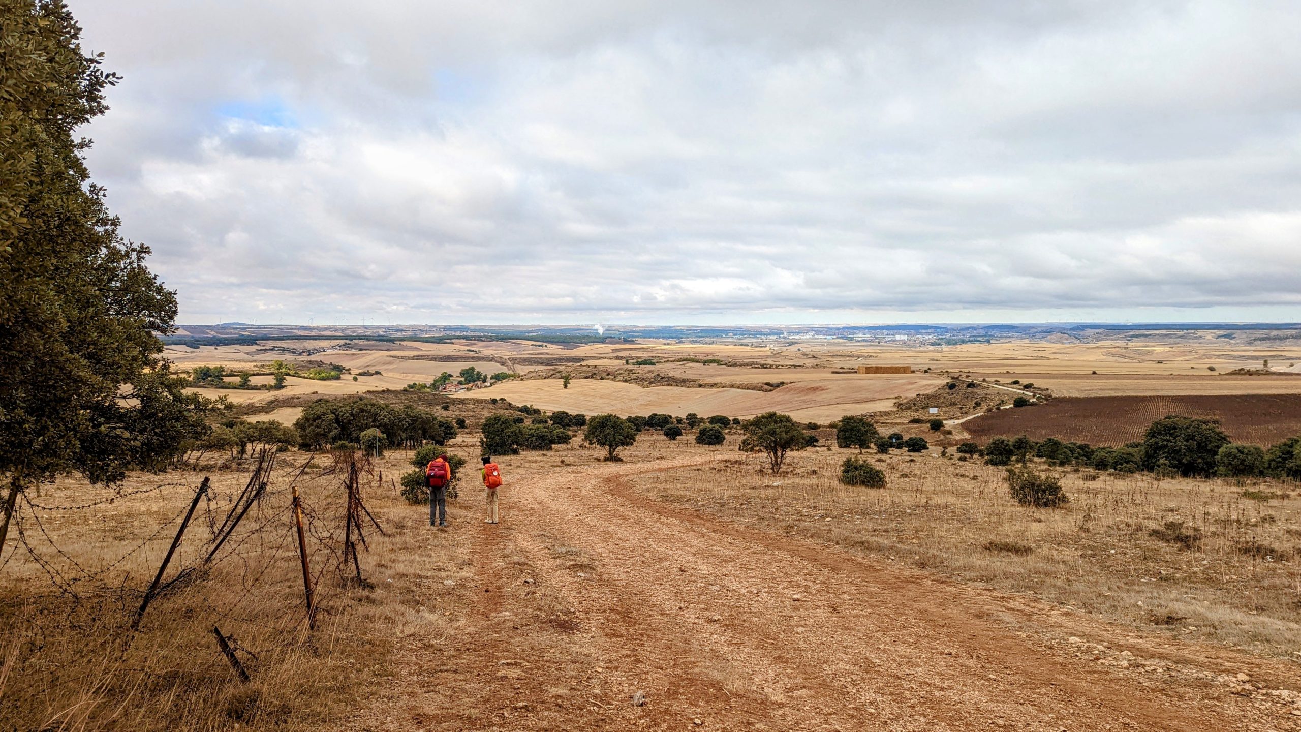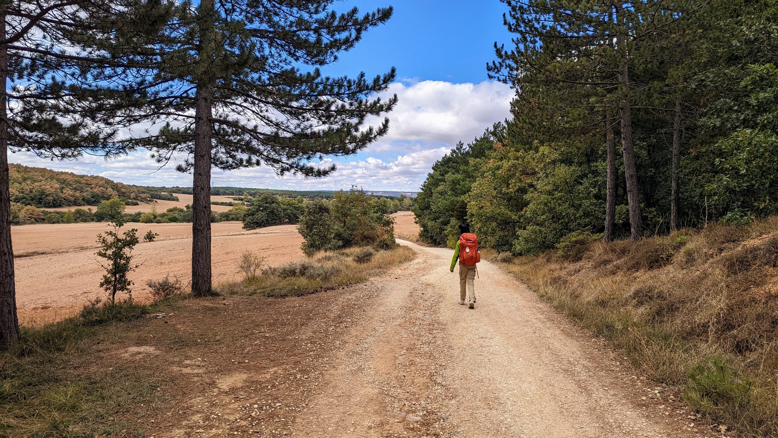 Nous traversons une forêt avec des collines et des vues infinies sur des champs dorés. Nous étions emmitouflés dans nos polaires, nos gants, nos buffs et nos doudounes car le voyage d'aujourd'hui s'est déroulé principalement sous la couverture nuageuse et lorsque 18 km sont au programme, cela peut certainement être bénéfique. Malgré le manque de soleil le long du chemin quelques rayons viendront quand même nous réchauffer. Surtout que sur ce tronçon il n’y a aucune fontaine d'eau disponible jusqu'à Atapuerca !.