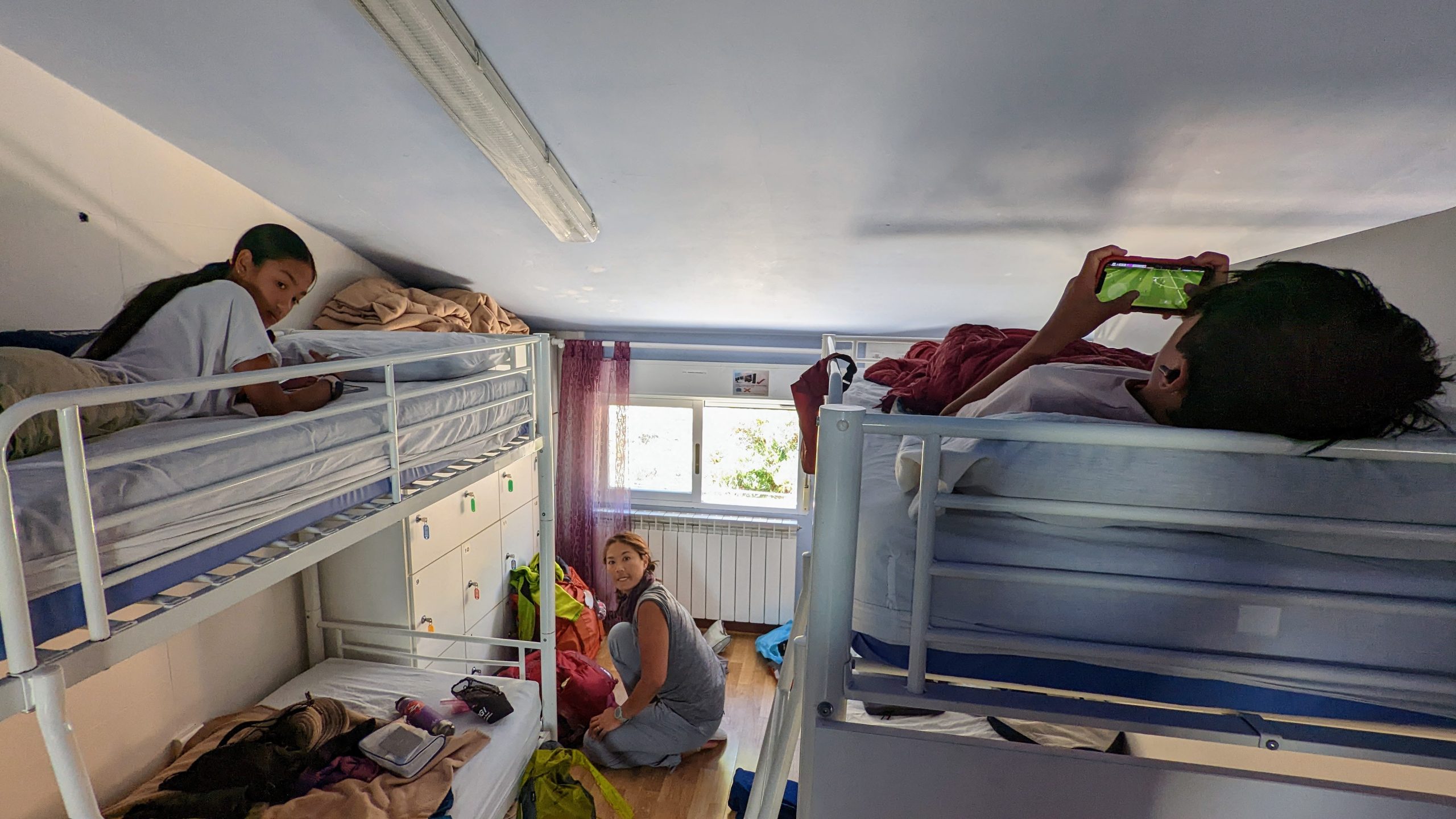 Nous sommes tellement bordéliques que nous prenons un coin avec 4 couchettes et nos affaires sont immédiatement dispersées comme des legos.