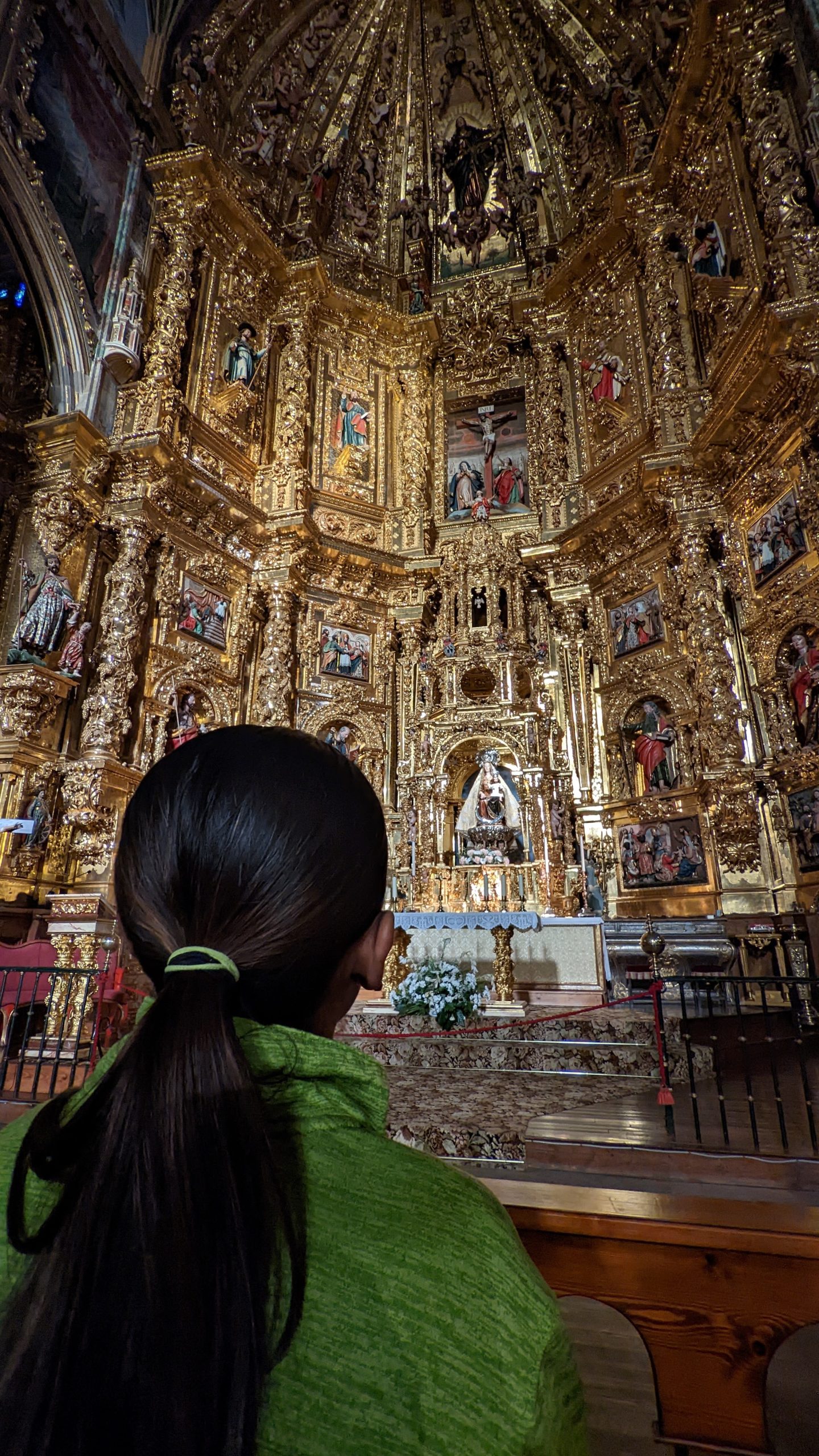 Nous nous sommes promenés dans le magnifique Monastère de Santa Maria de Real. Apparemment, la vierge Marie aurait apparue dans un grotte au roi Charles d'Espagne qui chassait. Il fit alors construire un château en sa faveur. Pendant plusieurs siècles il a vu de nombreux bienfaiteurs mais de nombreuses statues au cloître ont perdu leurs têtes car les soldats français Napoléoniens les utilisaient pour s'entraîner au tir !