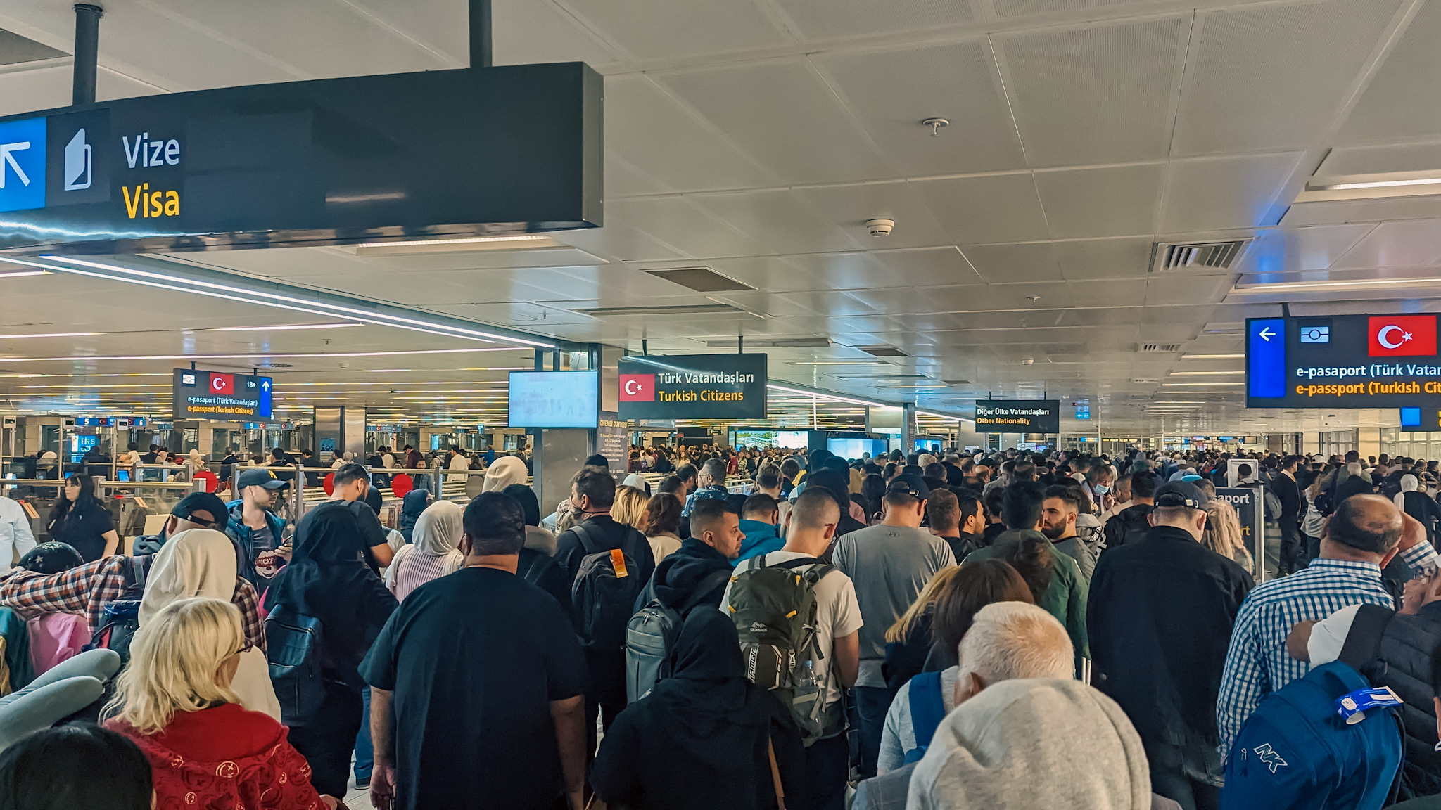Very early arrival at Istanbul airport with a slight feeling of chaos at the border.